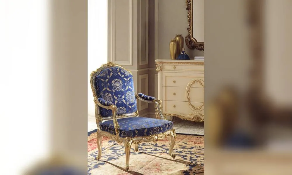 Кресло. Украшено резьбой. Возможны другие варианты отделки и обивки, в том числе в ткани клиента.