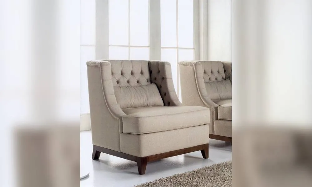 Кресло. Спинка обита в технике капитоне. Возможны другие варианты отделки и обивки.