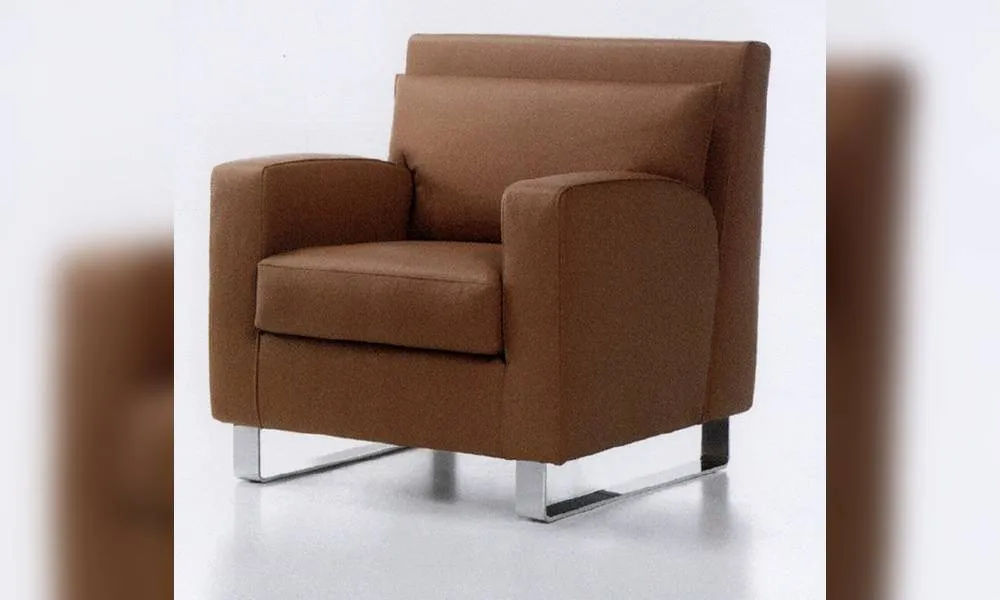 Обитое кресло с металлическими ножками. Возможны другие варианты обивки.