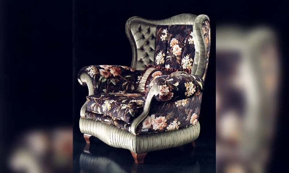Кресло с высокой спинкой, обитой в технике капитоне. Возможны другие варианты отделки и обивки, в том числе в ткани клиента.
