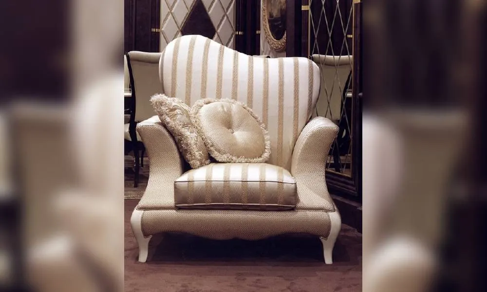 Кресло со спинкой влево. Возможны другие варианты отделки и обивки.