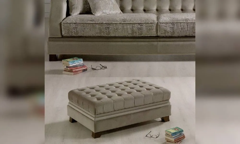 Прямоугольный пуф. Сидение обито в технике капитоне. Возможны другие варианты отделки и обивки.