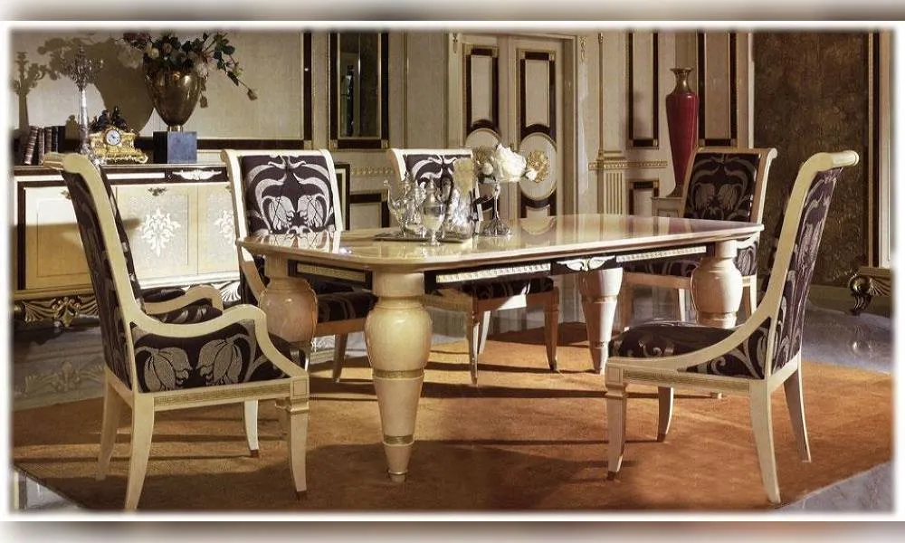Прямоугольный обеденный стол c фигурными ножками. Декор ручной работы. Возможны другие цветовые варианты отделки.