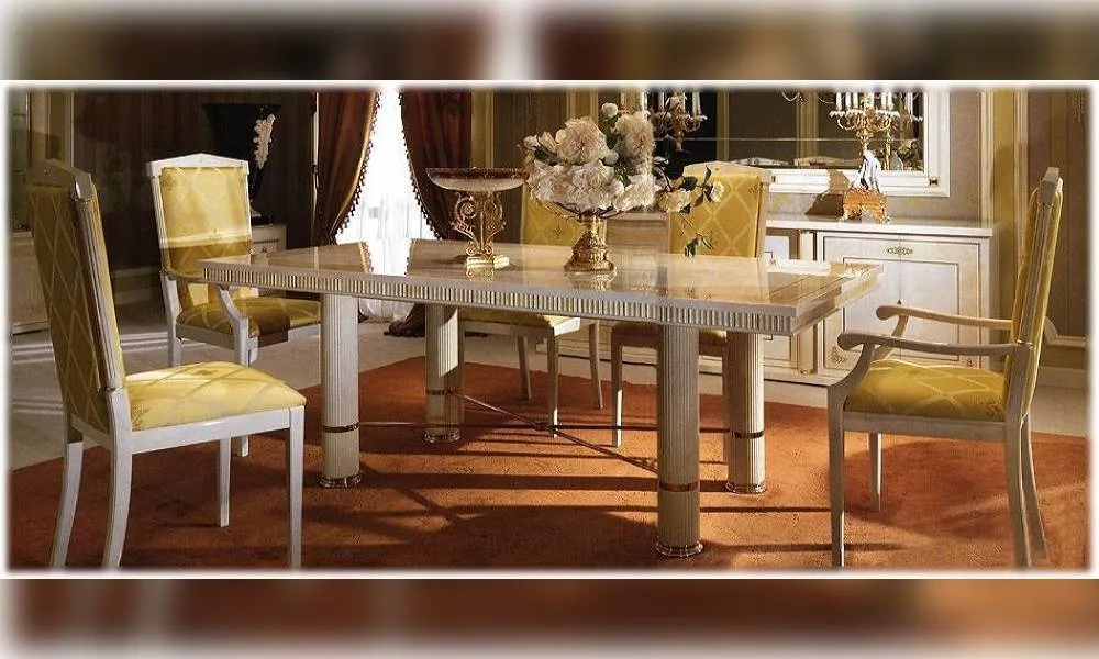 Прямоугольный обеденный стол. Декор ручной работы. Возможны другие цветовые варианты отделки.