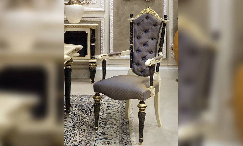 Стул. Декорирован резными элементами. Возможны другие варианты отделки и обивки.
