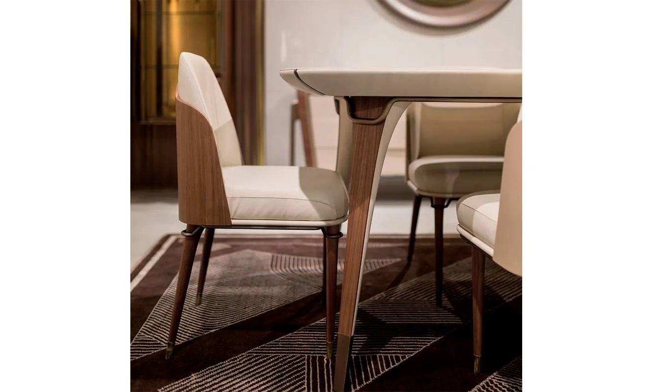 Стул со структурой из дерева, отделка - орех Каналетто. Детали выполнены из сатинированного металла бронзового оттенка. Возможна обивка спинки кожей разных видов и другие виды обивки сидения.